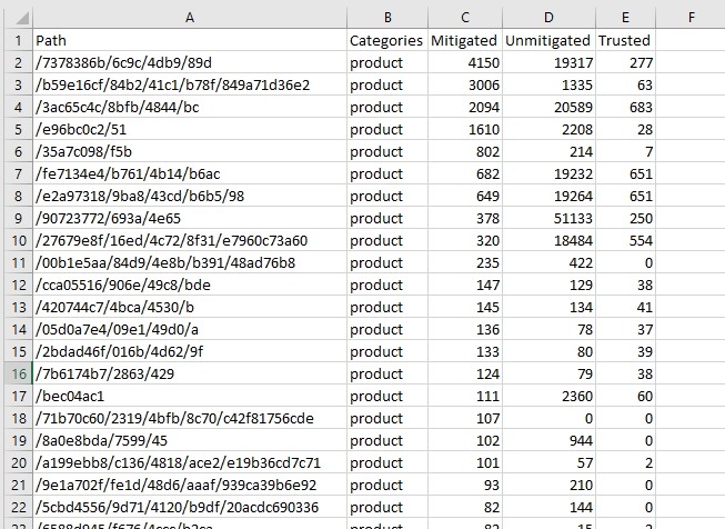 The inclusion of Categories will allow you to filter by path group, to identify which parts of the site or attack vectors are being targeted most heavily, either by bots or by legitimate visitors to the site.